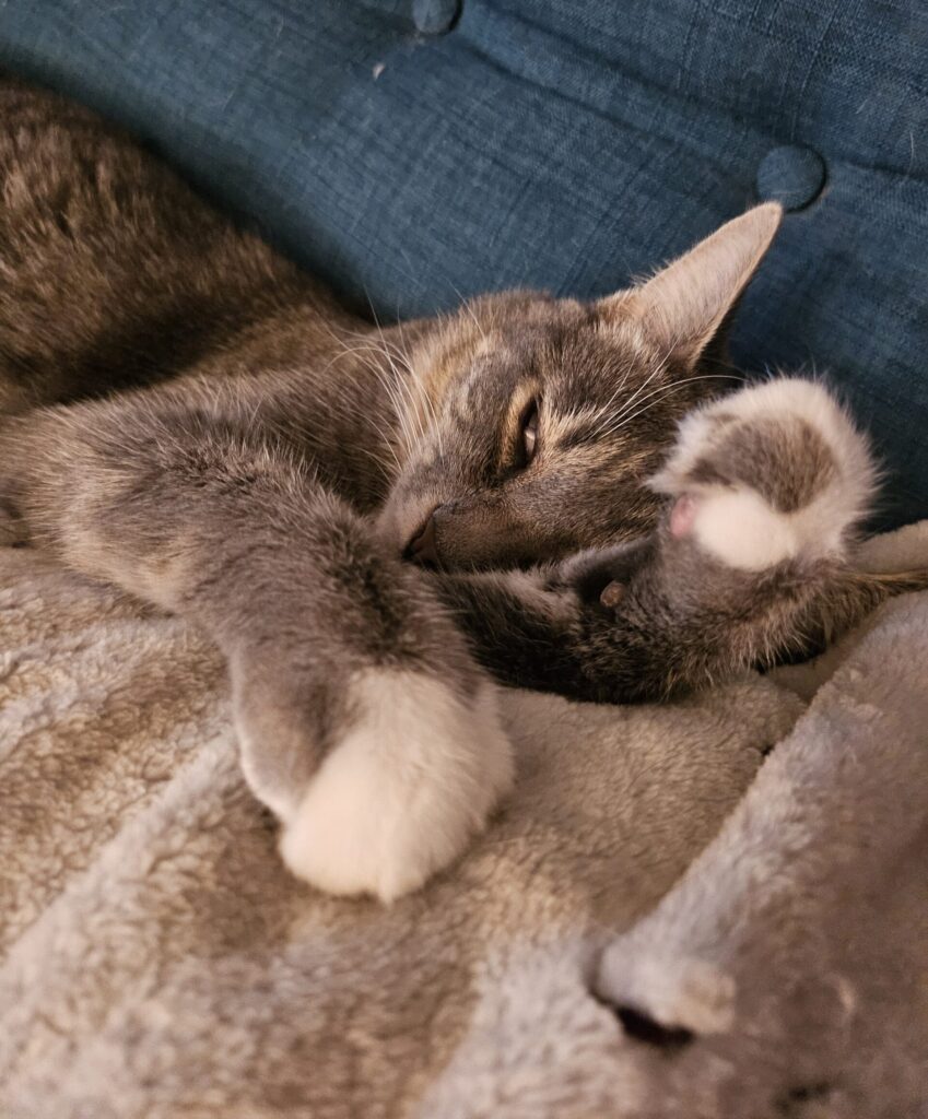 Agate was rescued in early 2025 from a horrible hoarding situation and came to Avalon incredibly shy. She has slowly been warming up to people and loves being in a home with other animals. Agate loves to nap in a windowsill where she can soak up all the sun. She enjoys snuggling with her foster brother Mr. Good Boy.