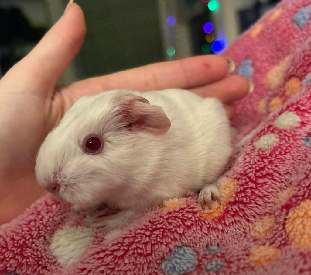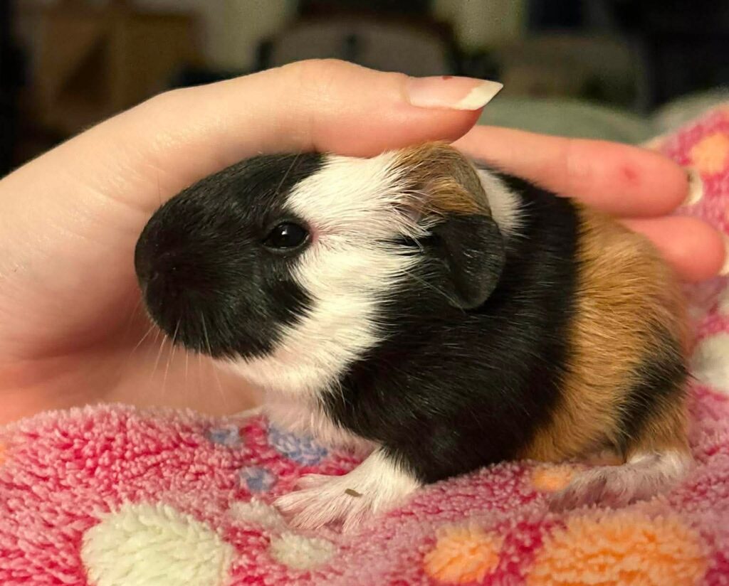Boba was rescued with a group of 15 guinea pigs found living outside in McMinnville.  She soon gave birth to her three babies.