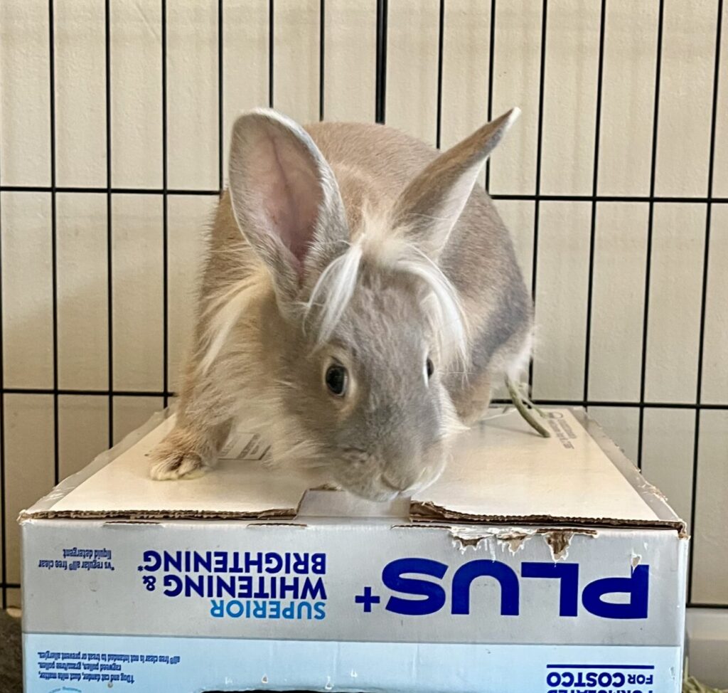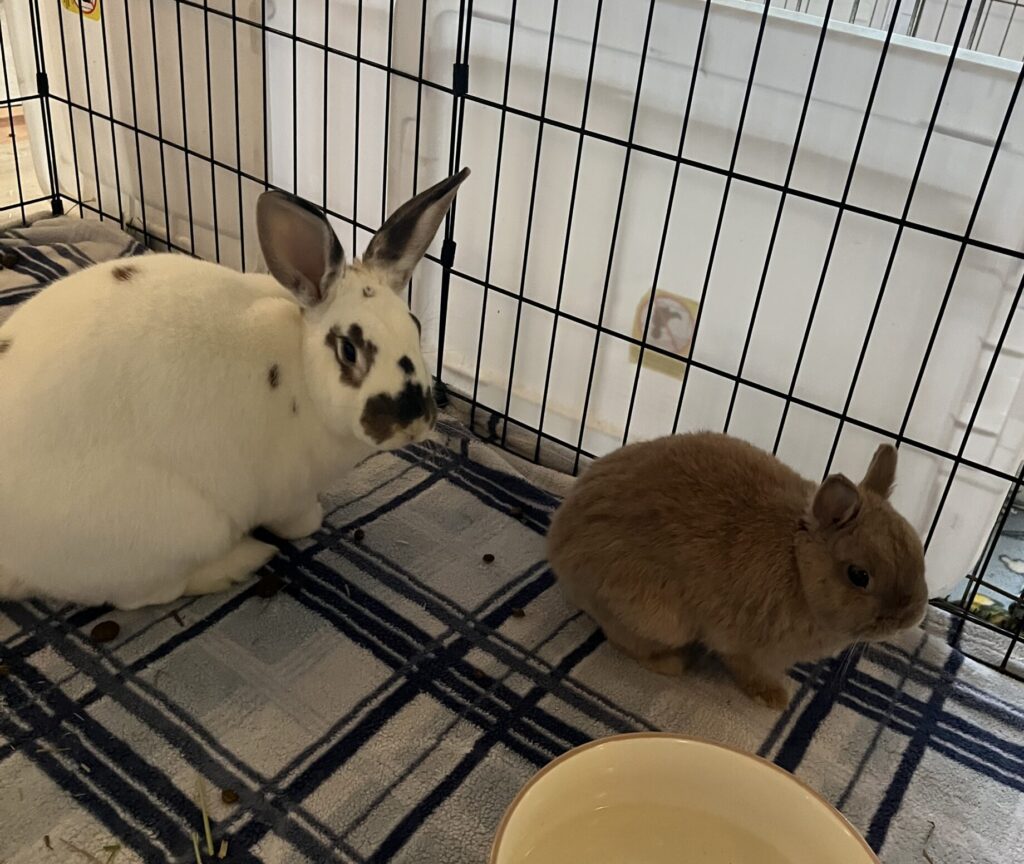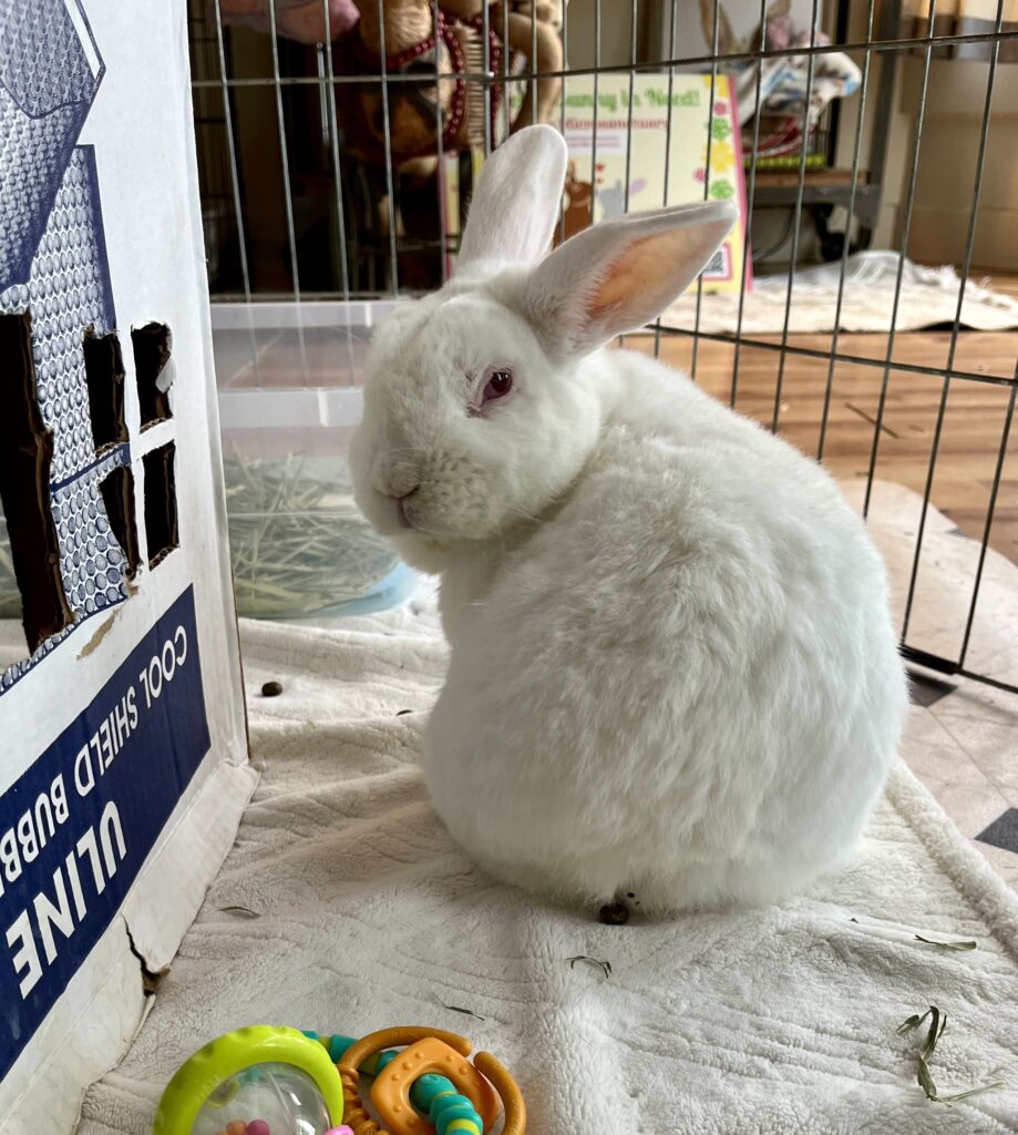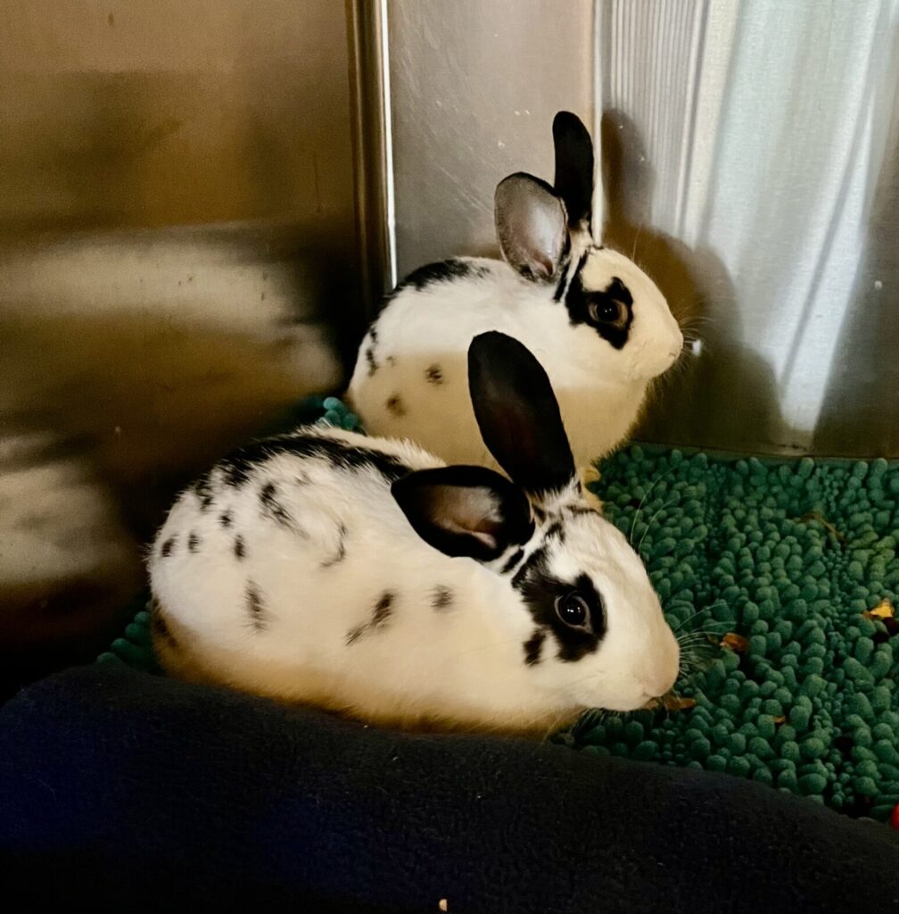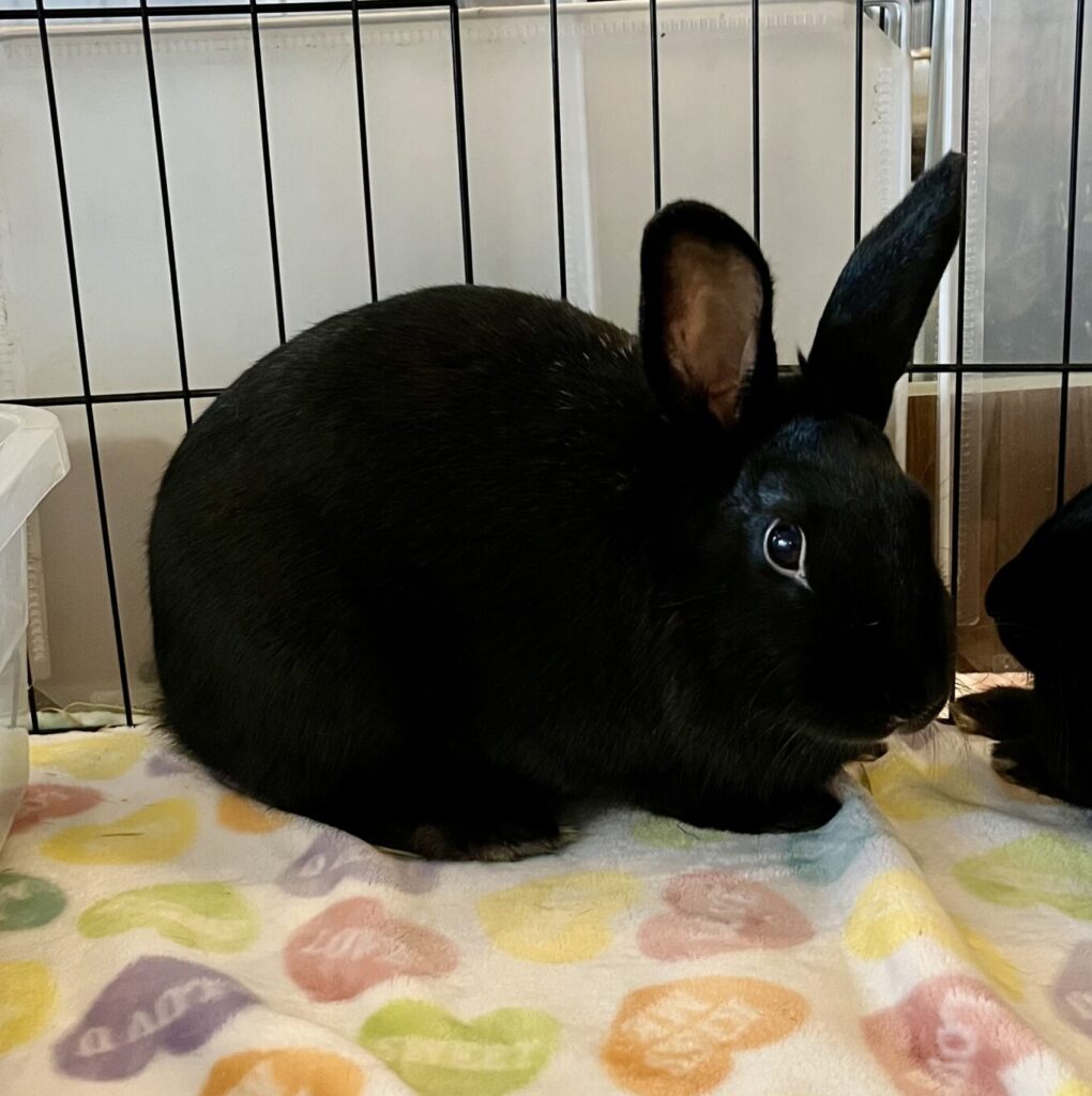 Upon arrival at Avalon, all bunnies receive veterinary evaluation and care, including flea and mite treatment as needed.  Bunnies are vaccinated for RHDV2 and most are spayed/neutered before being adopted.  For those that are not fixed prior to adoption (this can happen when a baby is adopted before being old enough for surgery), we work with adoptive families to make that happen ASAP, using our vet or theirs.  Until the bunnies are fixed, we consider them as a “foster to adopt” status. Spaying and neutering bunnies is incredibly important for their overall health and general wellbeing.