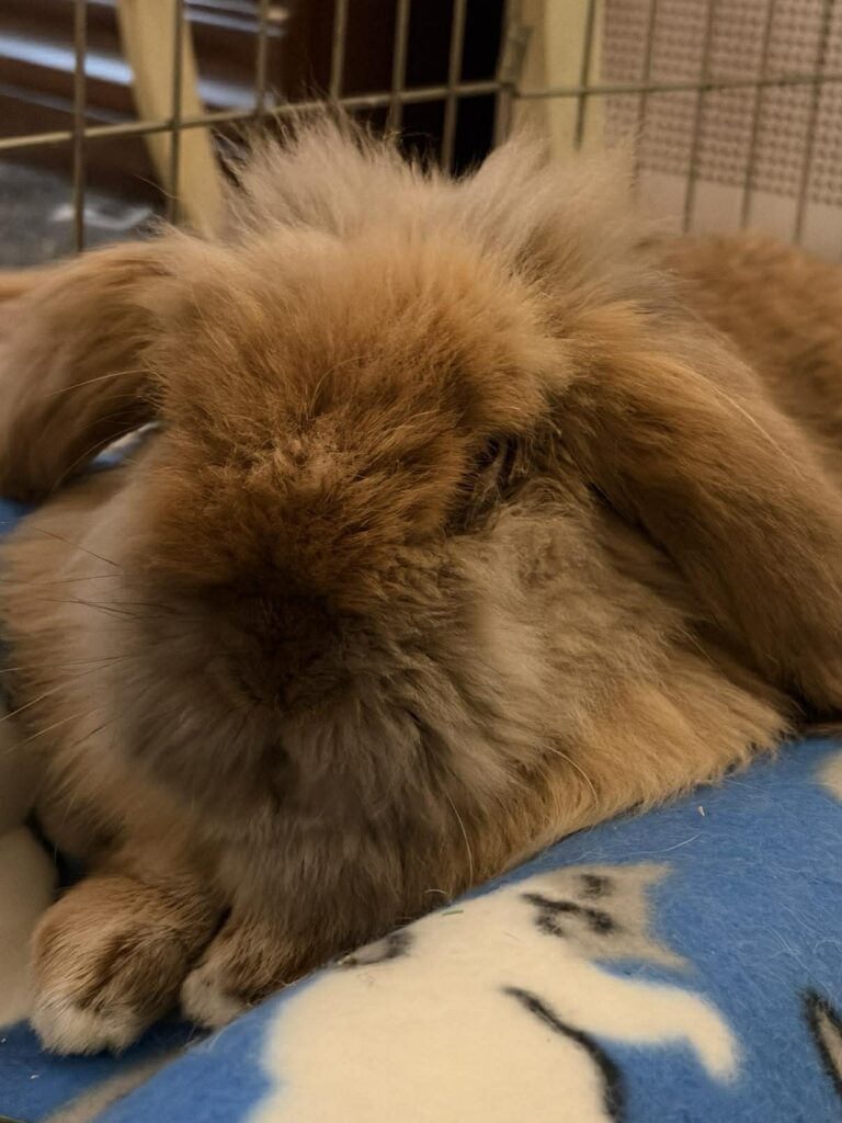 Fergus is a big ol’ fuzzball who is super sweet and loves his flop bed. In another universe he would be bunny royalty with his impressive coat and sage countenance. But instead he’s ready to come home with you and enjoy a loving family for the first time.
