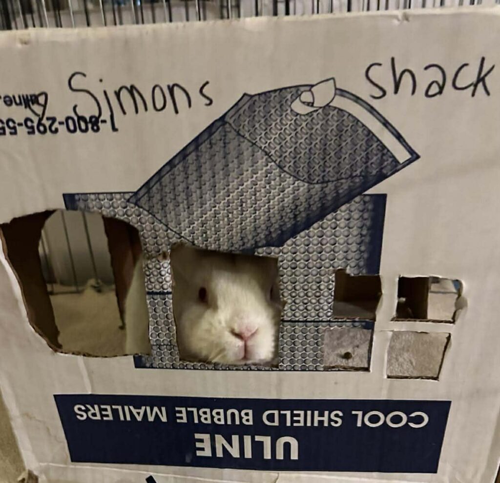 Simon was brought into the clinic after having lived outside for his entire life with around 20 other rabbits. He was attacked by the other intact rabbits and his wounds filled with maggots along with bad ear mites and malnutrition. His owner waited at least a week to bring him in. He was immediately treated and is on his way to recovery.